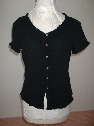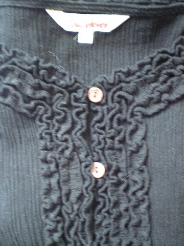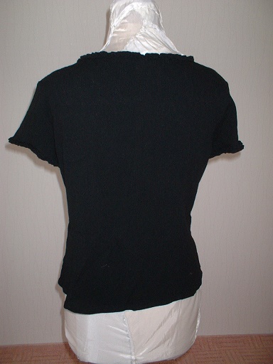A③ 美品☆即買♪Foureleven黒しわ加工フリルVネックブラウス伸縮性