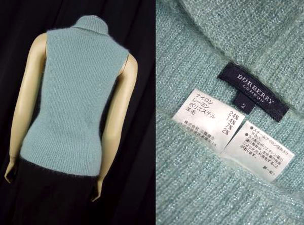 NC)新品同様*バーバリーロンドン BURBERRY LONDON★ふんわりモヘヤ混×煌めきラメ混★ハイネック★美形ノースリーブニット*2(Mサイズ 9号