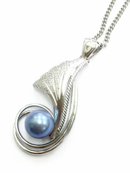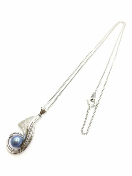 【ネックレス】約40cm パール付き 上品な色合い ブルー シルバーカラー ペンダント 銀色