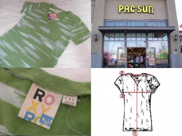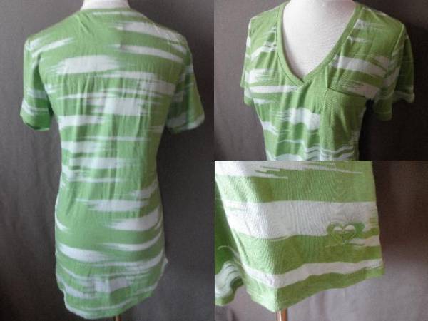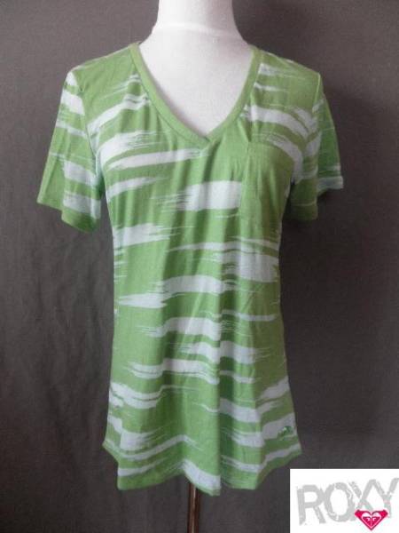 即決 本場USA購入ROXYロキシーポケット付 VネックT US L Green系