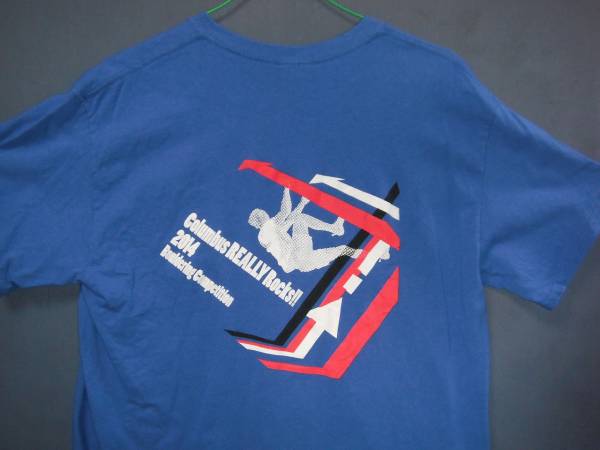 ⑧ USA古着 サイズM 前後 Columbus REALLY Rocks!! 青色半袖T
