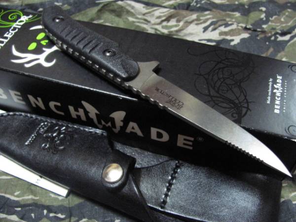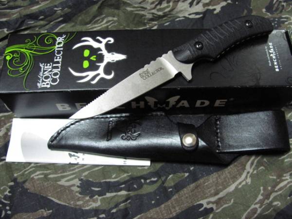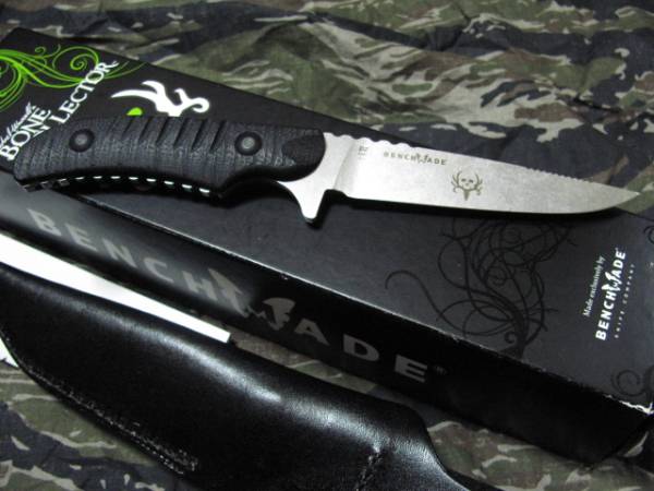 珍しいベンチメイドのシースナイフです。かつてあったウッドハンドルのトラウト&バードモデルを遊び心でアレンジしたようで、ハンドル部のタング全体が正確な凹凸に仕上げられています。ブレードはある種のZIPPOのような仕上げ。どくろのマークが粋です。G-10ハンドルは取り外しができます。210mm、ブレード98mm、箱入り233gほど。多少の誤差はご理解下さい。未使用新品ですが紙箱のわずかなスレや天然皮革のシースのムラなどがある場合がございます。苦情・返品なしでお願いいたします。ゆうパック60サイズで。携帯すれば罰せられます。未成年の方はご遠慮ください。画像は前回出品のものである場合もあり、風合いなどは一つ一つ異なります。