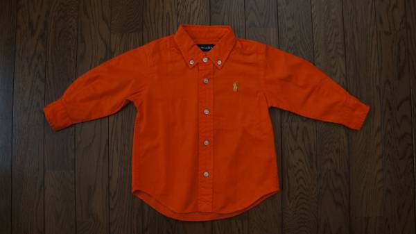 *  Ralph  Lauren   ラルフローレン   長袖シャツ   オレンジ・80CM   です。畳ジワ・毛羽立ちが多少あります。