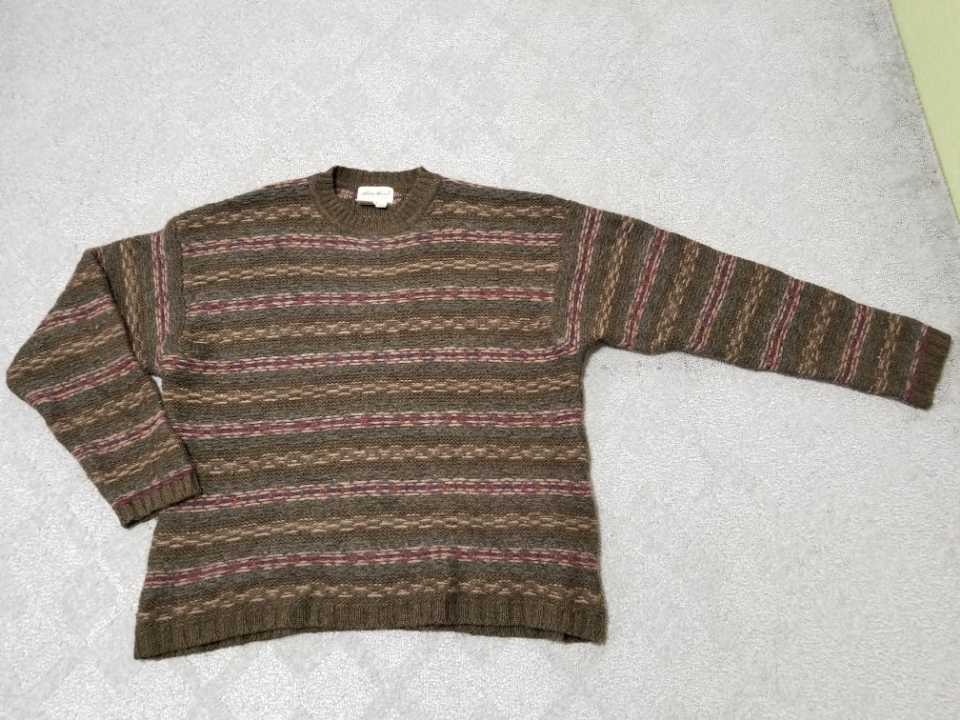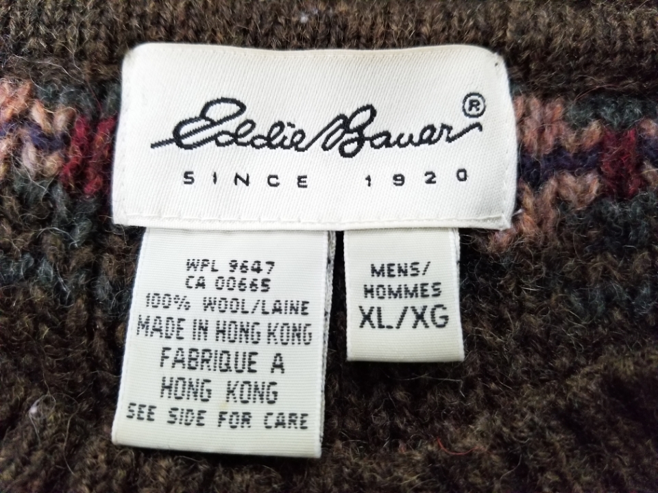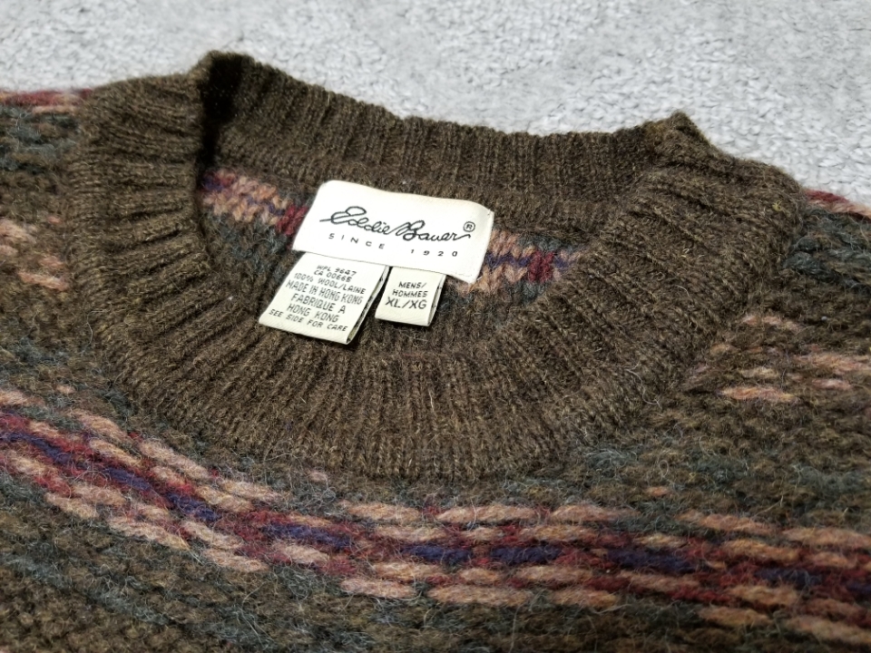 良好 ~90s HONGKONG製 EddieBauer エディーバウアー 変わり編み セーター XL 90年代 オールド ビンテージ ウールニット