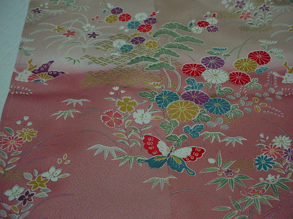 やさしい配色の地色で裾のとき色と横段で高尚な訪問着、また格調の高い小紋としてご利用くださいませ。