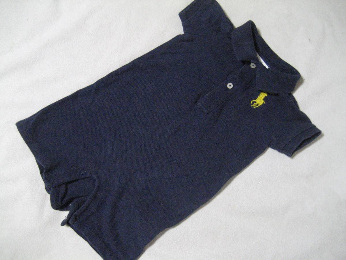 ★ 中古 RalphLauren ラルフローレン 70cm 綿100% コットン 半袖 カバーオール ショートオール ベビー 子供用 男の子 紺色 ネイビー