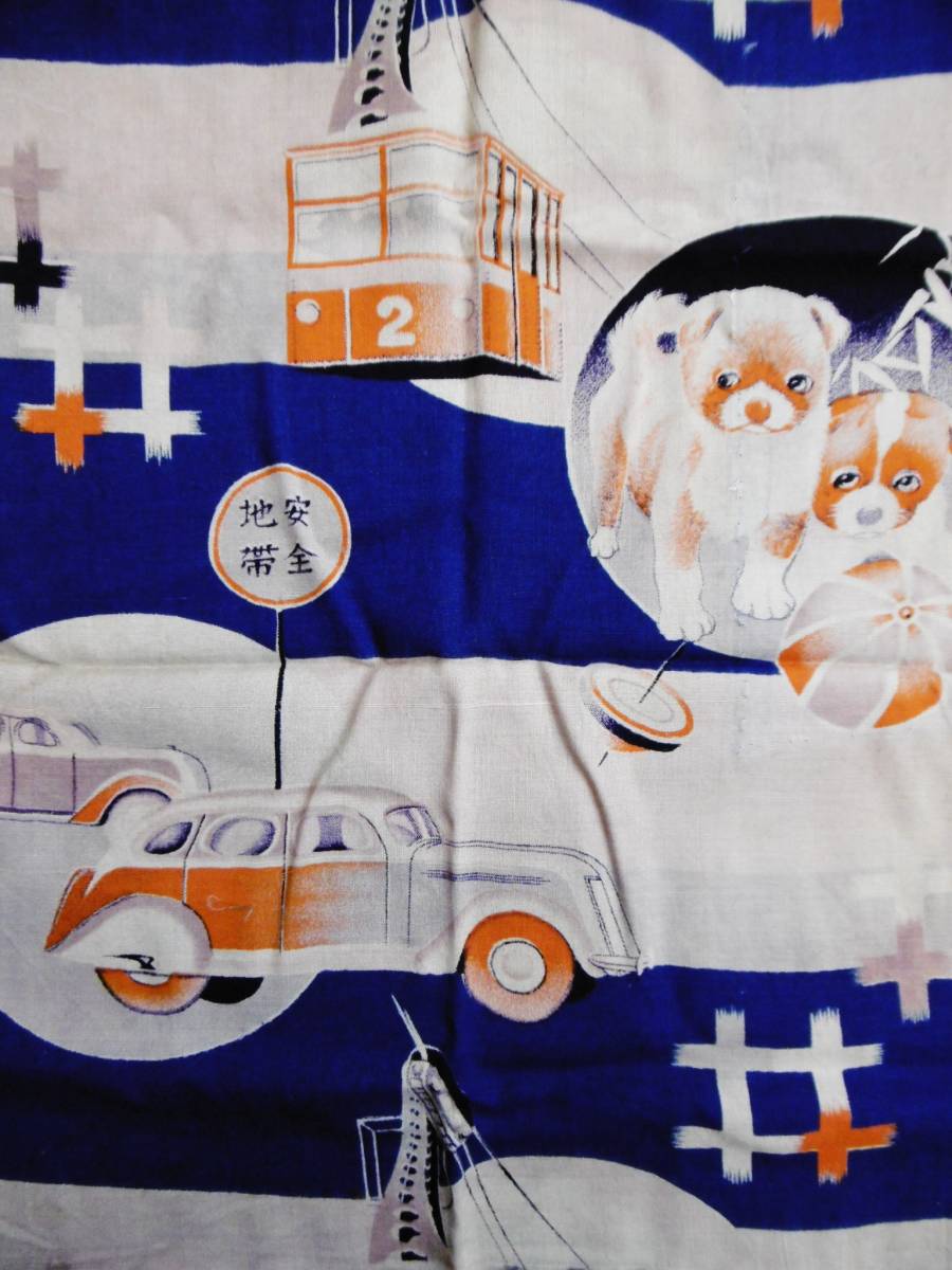 | 古い★自動車・安全地帯・子犬・ロープウェイ・着物端切れ昔図案昭和レトロ★ | |