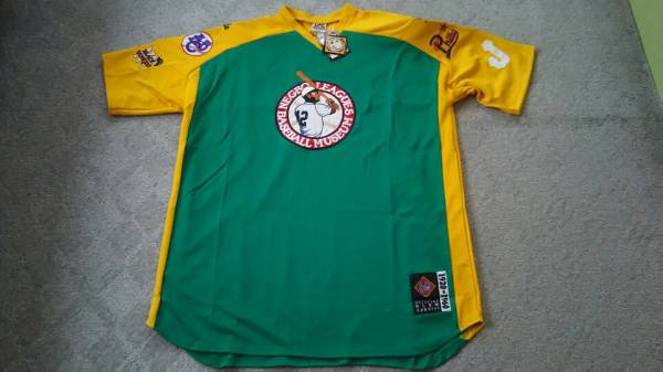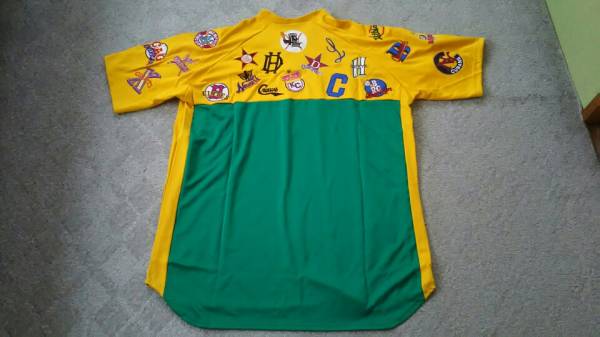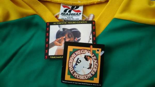 肩から袖にかけてニグロリーグの全チームのロゴがしっかりとした刺繍がされており、サイズ表記はXXXLです。