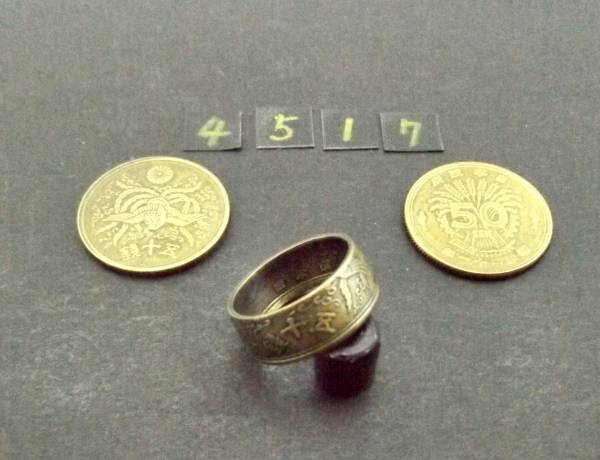 11号  コインリング  大型50銭黄銅貨使用  ハンドメイド手作り指輪  1点物です(4517)送料無料 他にも銀貨や銅貨の指輪を出品中
