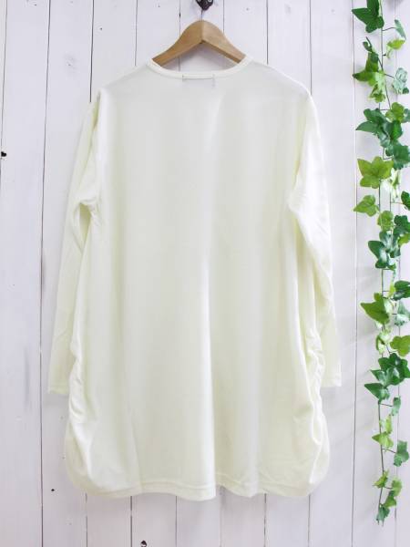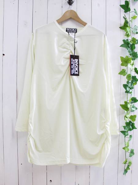 新品*INVOICE*ベロア シャーリングチュニック (F) オフホワイト/定価15,800円【499-5848】