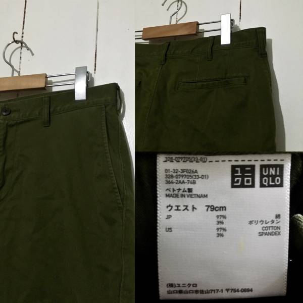 ○商品:☆UNIQLO 79cm ストレッチ ワークパンツ 緑 カーキ ストレート テーパードです。