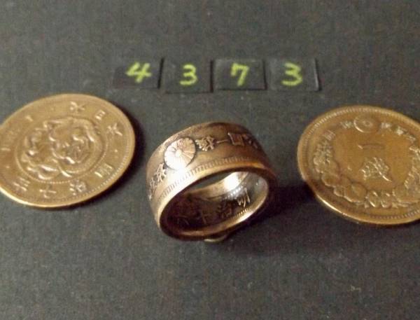 10号  コインリング  竜1銭銅貨使用  ハンドメイド手作り指輪  1点物です  (4373)送料無料 他にも銀貨や銅貨の指輪を出品中