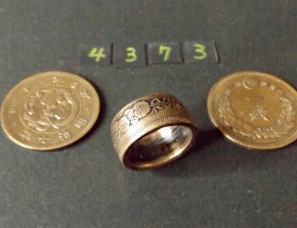 この商品は、明治16年発行の竜1銭銅貨を使用し、銅貨に穴を明け木槌で叩いてリングに成形した1点ものです。