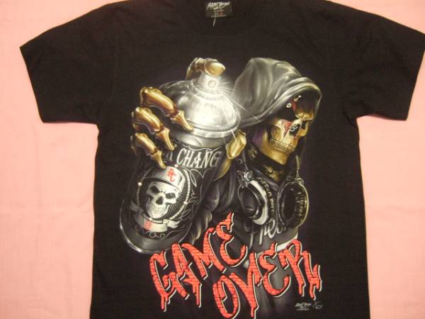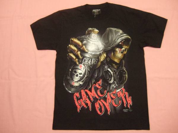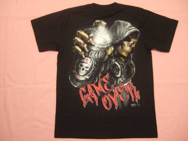 商品名 | 横浜最新 夜光鋲付GAME OVER♪魅惑のドクロTシャツ サイズ M, L |