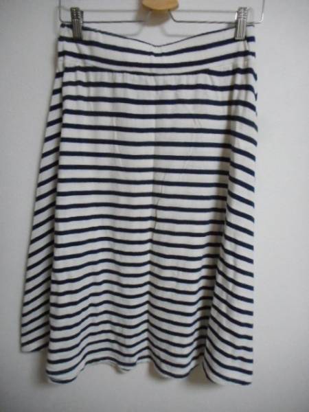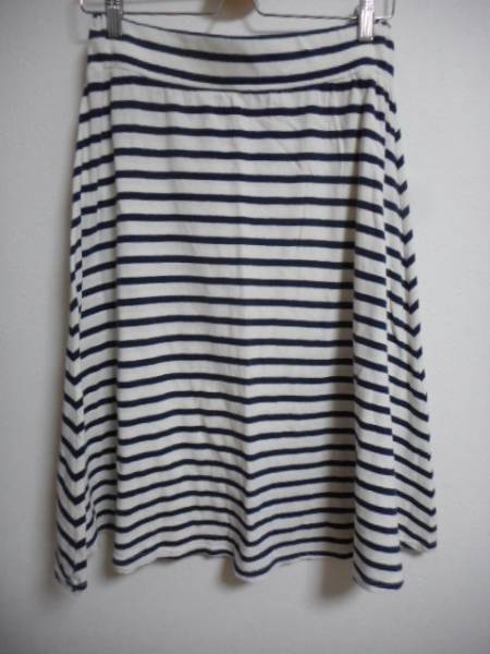 SM2 麻&綿 フレア スカート ウエストゴム M 白×紺ボーダー柄 |