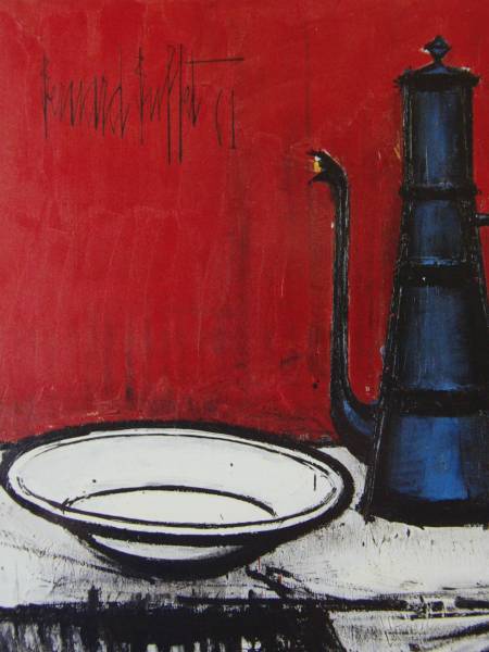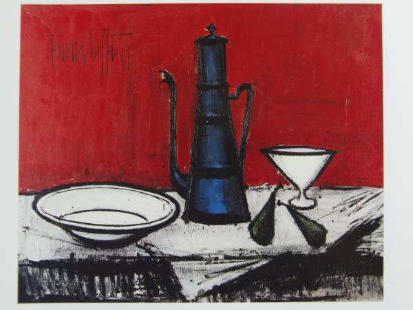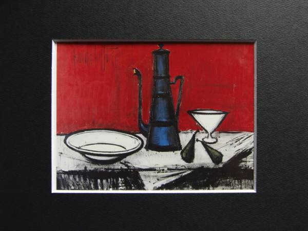 送料無料、希少画集 、マット付高級額装、ベルナール ビュッフェ、コーヒー沸かしのある静物