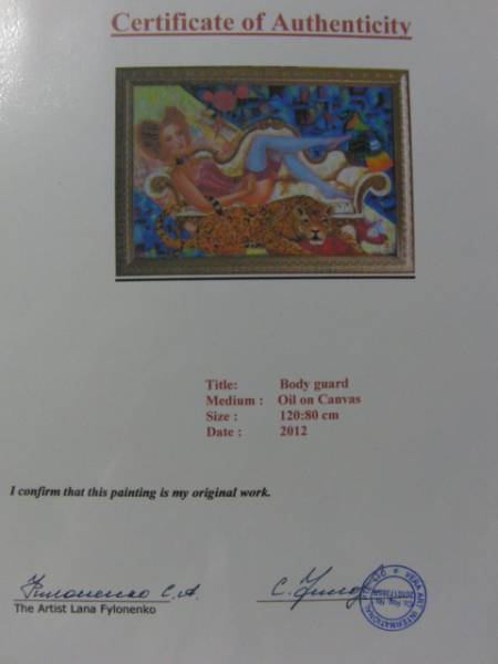真作保証、証明書付:certificate of authenticity付(3枚目の画像)。『Civt・Fyolonenko・LANA』。ウクライナ出身、人気女流作家です。国際美術家友好協会・名誉会員。
