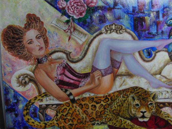 ≪国美協≫Civt・Fyolonenko・LANA、ラナ『ボディガード』、油彩画、豪華:120cm×80cm、油絵、新品高級油彩額付、直筆サイン・真作保証付