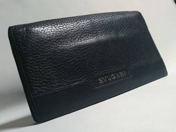 正規 激レア セレブ愛用 ブルガリBVLGARI アーバン 長財布黒 ブラックレザー×シルバーロゴ文字 小銭入れ有★ 約18×10㎝ 男女兼用可能〇