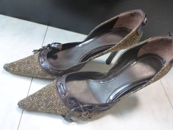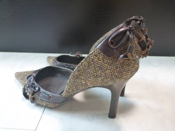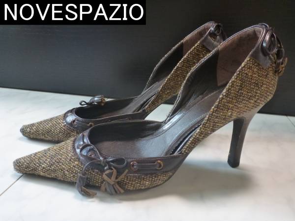 2.5万★NOVESPAZIO ノーベスパジオ★ 茶系ツイード生地 パンプス 22.5
