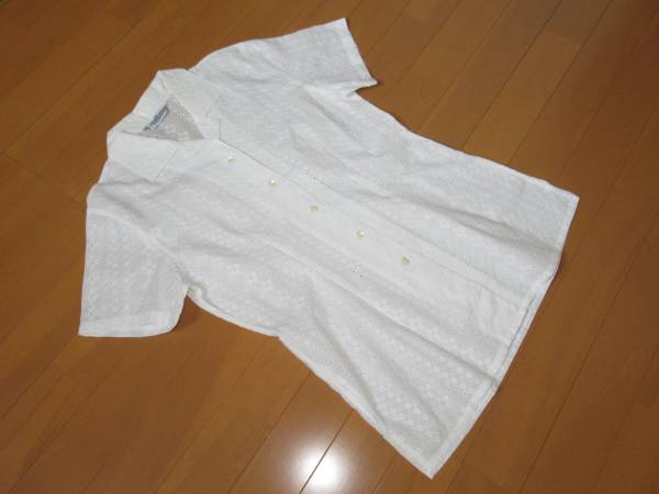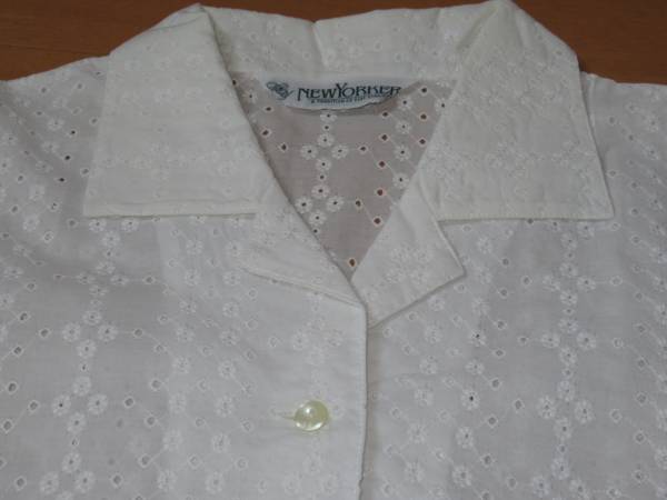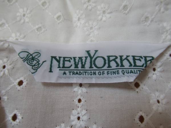 美品 ニューヨーカー(New Yorker) 白い半袖レースシャツ 9号Mです。1回のみ使用した美品です。平置で肩幅40cm、脇下身幅45cm、丈70cmです。綿100%なので、とても着易いです。上品な総レース地でとてもエレガントです。ご検討宜しくお願い致します。ノークレーム・ノーリターンでお願いします。(E54)