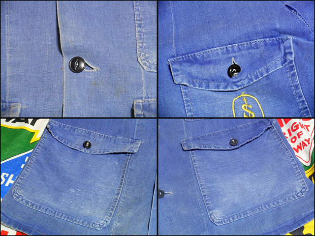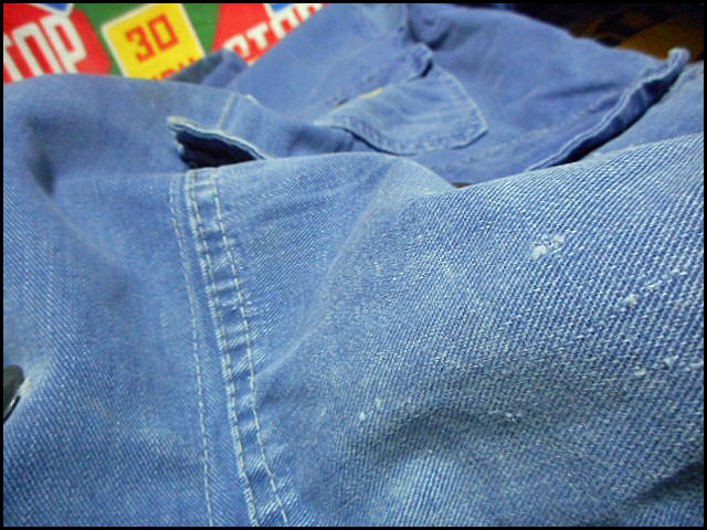 3つポケのカバーオールで、ユーロワークらしい生地の退色感も抜群にオーラがあり、雰囲気系のジャケットがお好きな方にもオススメなビンテージワークジャケットです。