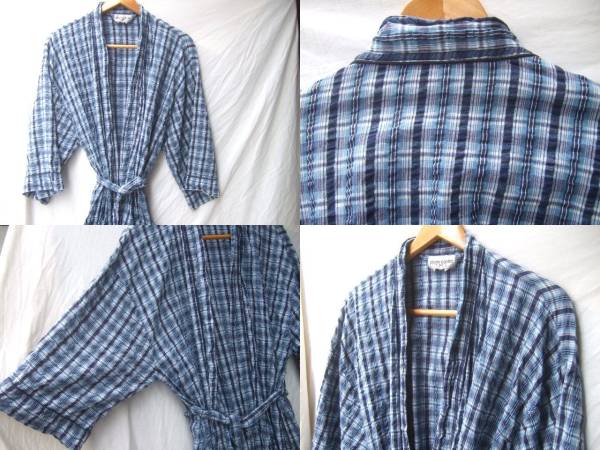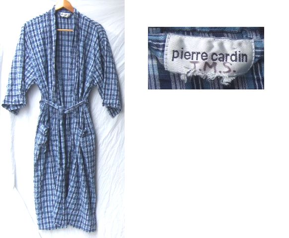 ピエールカルダン ガウン ストライプ古着 pierre cardin USED レトロ 羽織 青 ブルー