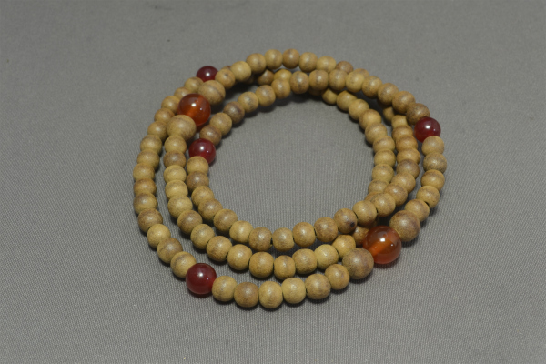 商品説明 | 主玉(沈香) 約 5mm 天玉(瑪瑙) 約 6mm 親玉:向玉(瑪瑙) 約 8mm 三重巻内周 約 16cm |