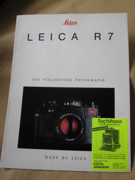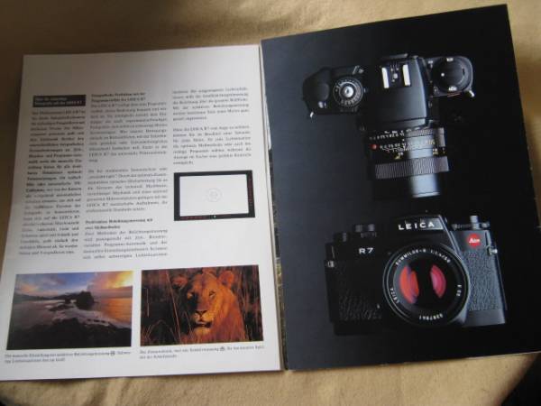 1992年刊。ドイツ語。変形A4版。見開き8ページ。フルカラー。めずらしいドイツ国内のカタログ(プロスペクト)です。ズミルックス付きの一眼レフカメラです。力強いメッセージの伝わるカタログです。ケルンのライカ専門店のステッカーが貼ってあります。 軽度の使用感があります。お安いクリックポストでお送りします。