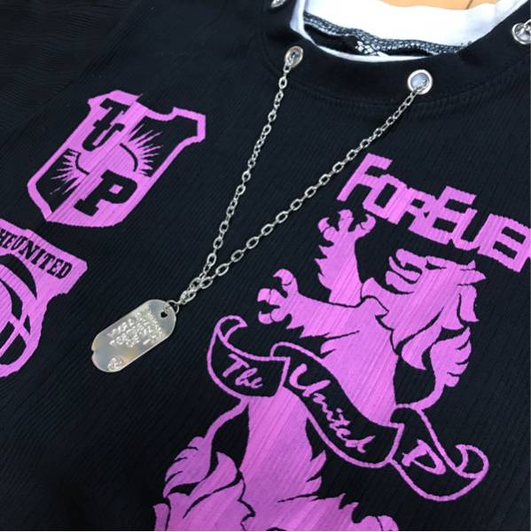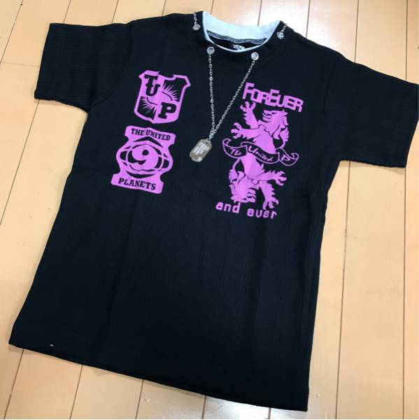 ◆取外し可能なプレートのチェーンアクセサリー付でネックレス単品の使用も可能♪激渋トライバル系♪バックプリント有♪胸元重ね着風デザインもオシャレで格好いい半袖Tシャツ