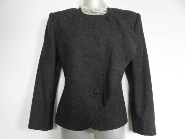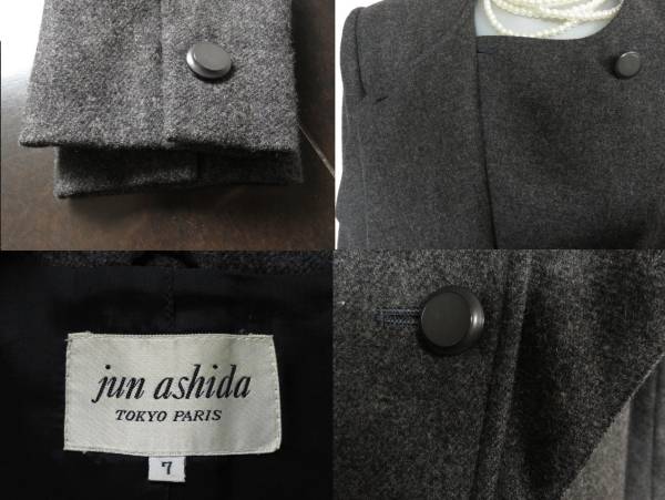 ■上質美品【 jun ashida 】ジュン アシダ 高級 ウール ジャケット 7号 S JUN ASHIDA グレー j166