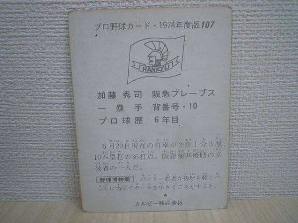 1974年カルビープロ野球カードNo.107 加藤秀司(阪急)です。