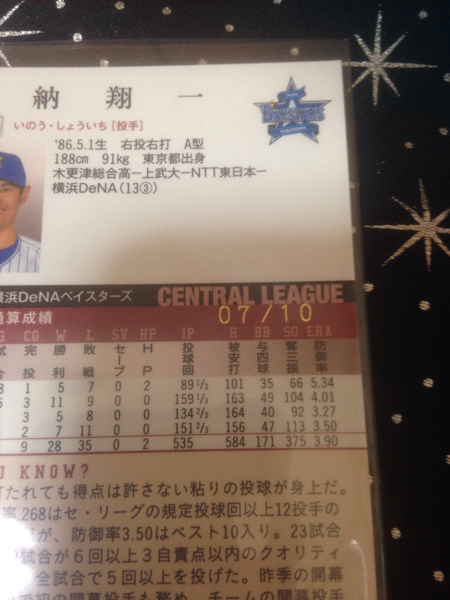 井納選手の10枚限定の緑泊サイン