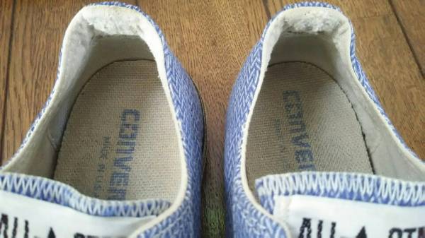 青白の変わり織の生地を使用した一足で、サイズはUS4ハーフ(23cm)です。