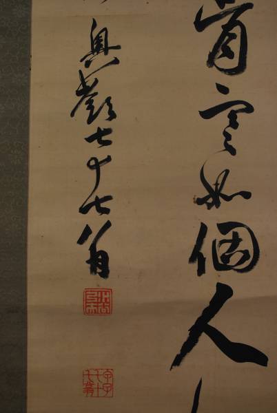 【作品状態】 本紙は絹本肉筆です。本紙は薄汚れ、全体に糊シミ、多少の巻シワあります。表装は薄汚れ、多少の時代感あります。
