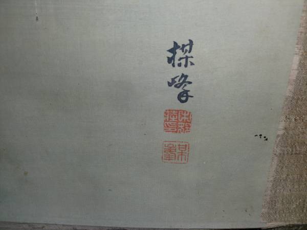 絹本、 表装 絹、軸先 木。