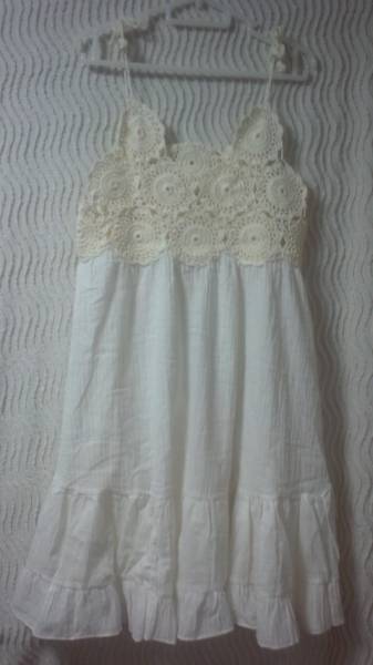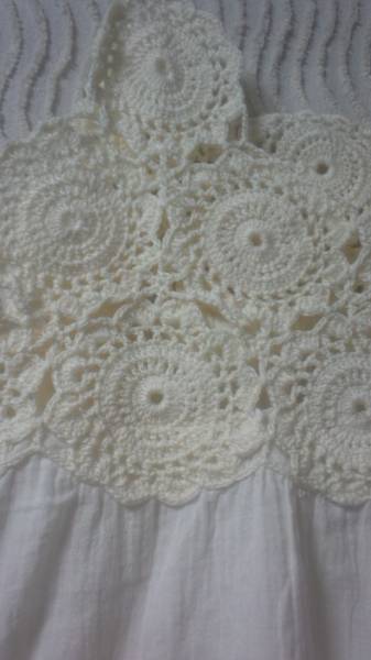バスト部分がカギ編みのお花のようなデザインが連なったワンピースです。