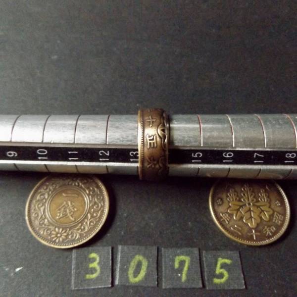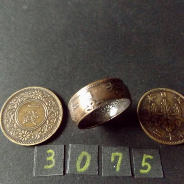 13号 コインリング 桐1銭青銅貨 ハンドメイド 指輪 送料無料 (3075)