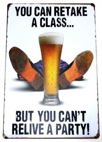 【ブリキ看板】YOU CAN RETAKE A CLASS...★BUT YOU CAN'T RELIVE A PARTY!★ビール★アメリカン雑貨★パブ・バー/AA-456