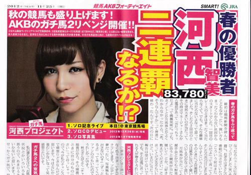 ▼JRA 日本中央競馬会 AKBのガチ馬2リベンジ 河西智美 ソロデビューシングルCD 競馬AKBフォーティーエイト新聞 他