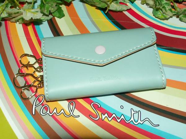 400 新品本物 ポールスミス Paul Smith 牛革 ラバーレザー 4連 キーケース スカイ