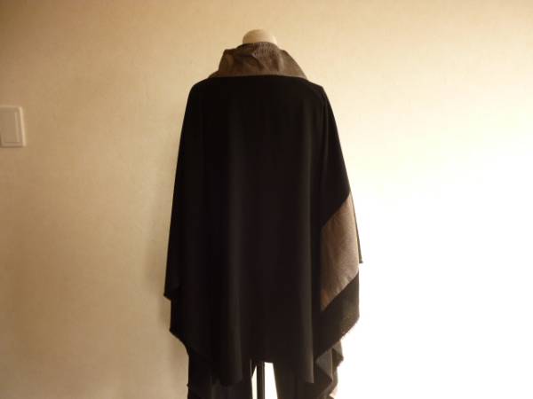 某有名フォーマル会社で使用されております、黒フォーマル地と泥大島紬の着物を解いて、ポンチョコートにリメイク致しました、実寸は胸幅65程度、袖先から袖先まで140程度、総丈71程度になります。。M~4L程度の方まで、お召しいただけます。襟に特殊手芸用アルミを入れておりますので、襟を自由に描けます。ポケットを2つ付けました。一番お安い送料でお送りいたします。