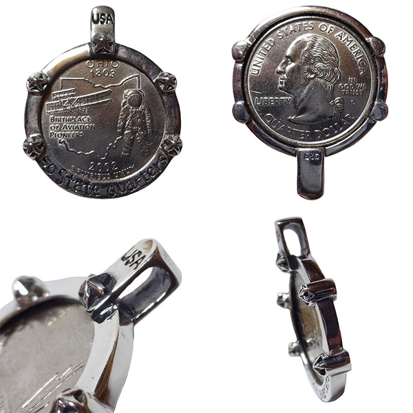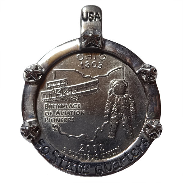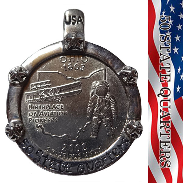 新品 USA QUATERS アメリカ 50州記念 25セント ネックレス オハイオ OHIO 硬貨 コイン シルバー アームストロング スペースシャトル J1
