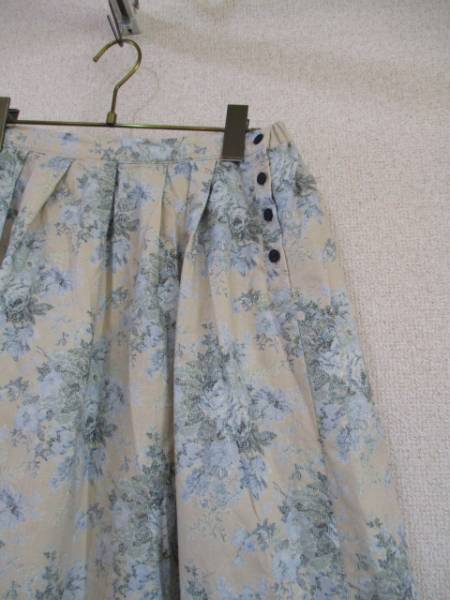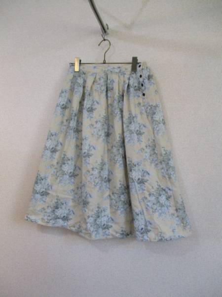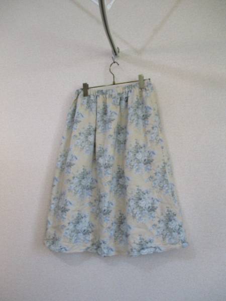 商品紹介 | ゴブラン織りのようなブルーを基調としたバラのプリントがオシャレな ロングスカートです。 地色は黄色味がかったベージュです。 《素材》 表地:綿100% 裏地:ポリエステル100% |