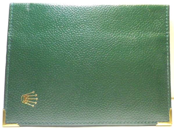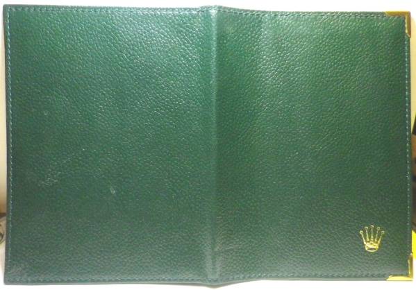 ROLEXパスポート・ケースです。革製。グリーンです。80年代頃の物と思います。表面の革の状態は大変に良好です。内部に『MONTRES ROLEX S.A GENEVE SUISSE 68.08.34』の刻印があります。内側の合成皮革の分部に剥がれ若干があります。一般に出回らない珍しい物です。ファンにお勧め!ディスプレイとしてもお勧めです!中古品ですので、ノークレーム、ノーリターンでお願いします。貴方のコレクションにどうぞ!落札価格に送料がかかります。