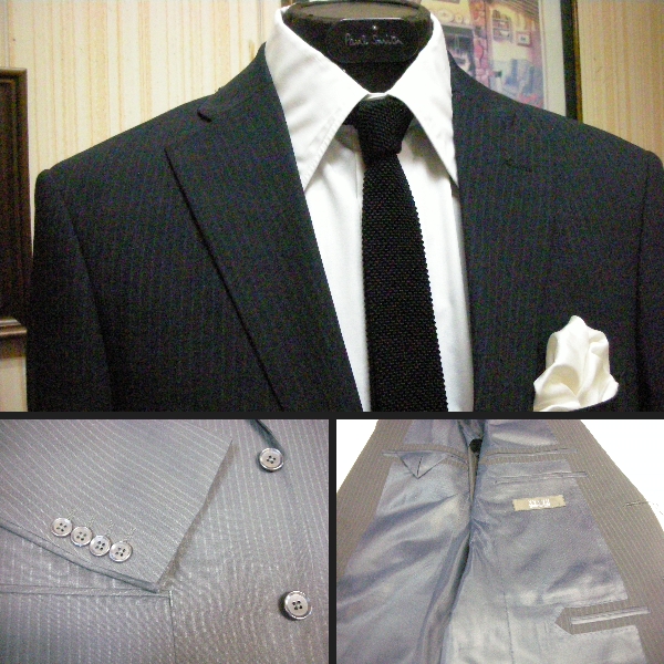 ジャンク市★A-7黒色地 ダブルペンシルストライプ縞毛混前2釦JC