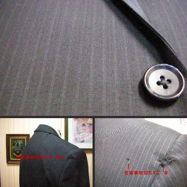 いろんなシチュエーションに役立つ 一着は持っていたいブラック色地ダブルペンシルストライプ縞柄の毛混前2釦ジャケットです。アーバンティドレスなセンターベントデザイン。 疲れにくい快適な軽さのこだわり仕立。前 2ボタン 袖 4ボタン。個性的存在感有るスタイリッシュデザイン。ベーシックなブラック色地に2本のWペンシルストライプ線縞柄織地シングルジャケット です。 ナチュラルショルダーで素材はしなやかな毛混生地です。 軽量仕立ての動きやすく 快適着心地上着です。生地は 極細繊維毛 50% ポリエステル 50%  です。エレガントなディテール こだわりのフラップ付機能的内ポケット仕様です。スーツ外し上着ですので 贅沢仕様ジャケットです。 サイズ(平置実測採寸)は 肩幅 43,5cm 着丈 75,5cm 身幅(脇下) 52,5cm 身幅(胴部分) 48cm 袖丈 62,5cm 細襟 7,3cm ノッチドラペル の  A-7 サイズです。 適応サイズ表示は 身長 180cm 胸囲 96cm 胴囲 84cm  96 A-7 の表示ラベルです。そして 念の為 各部分のサイズ数値を 必ず 吟味 ご確認下さい。勿論 新品です。タイドアップでも スポーツシャツ セーター等にも エレガントなドレスオシャレモードとなります。そして、メーカー配慮の為 メーカーラベルは外してあり 超安値スタートとなります。ただ 三番目画像で示す様に 右肩後部分に事故切りキズ有りのジャンク品です。普段着 仕事衣 等としても ご活用下さい。その為 ジャンク度レベルにより 超安値の処分価格スタートとなります。よって お買い得となっております。尚 毎週木曜日は業務定休日で御座います。ご連絡、ご発送とも木曜明けの金曜日にずれ込む事 ご了承下さい。