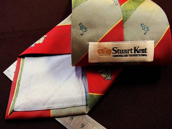 0^o^0ocl♪ra0985美品スチュワートケント【猫/蛙/動物】ネクタイ