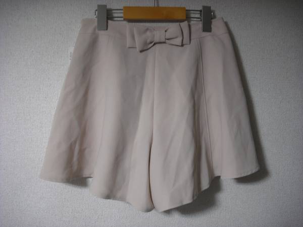 写真のようなキュロットになります。 サイズは1 表地・裏地:ポリエステル100% 税込5985円 MADE IN JAPAN おおまかですが・・・着丈40cm、身幅32cmくらいです。 写真の状態でメジャーで測っています。 私見ですが…お色はベージュっぽいです。 リボンはお好きな場所に留められます。 新品、未使用品ですが保管中の汚れ、畳みジワ、経年劣化、他商品と触れあっているため糸クズの付着などございますし、個人所有になりますので糸のほつれ、汚れやスレなどの痛みがある場合もございます。 現状でよろしくお願いします。 約191g 簡易包装の規格内の定形外郵便250gかレターパックライトで発送予定です。 |