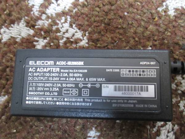 [B2-1/A-2]良品ELECOM AC アダプタ ACDC-IB2065BK★EA10632B★20V-3.25A